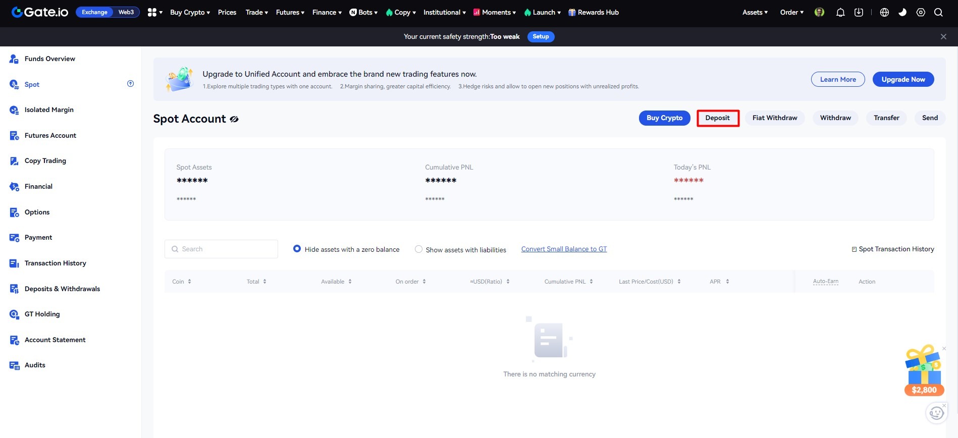 1. In the top right corner, click on "Assets" → "Spot Account."