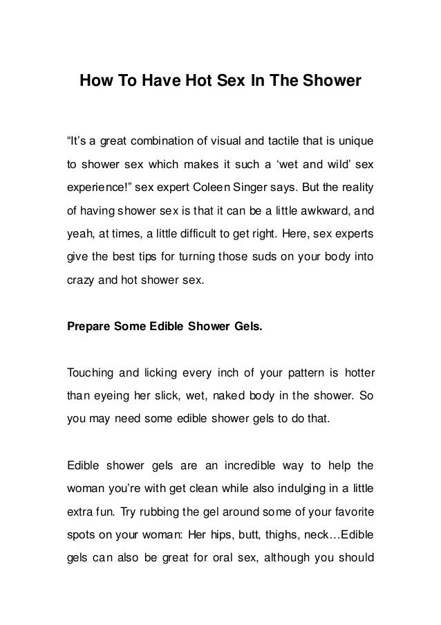 How to have shower sex Set the mood Ian Kerner, PhD, a sex counselor and psychotherapist based in New York suggests making the bathroom a little sexier before getting it on can be a total gamechanger .