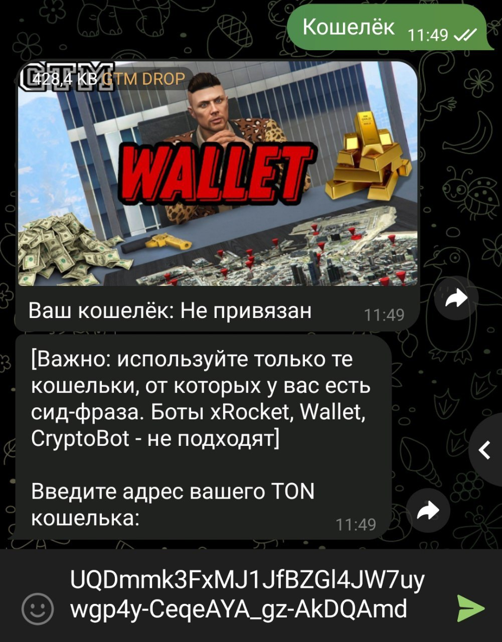 Next, submit your wallet address. IMPORTANT: you should use only those wallets from which you have a recovery phrase, except for the following: [xRocket, Wallet, CryptoBot].