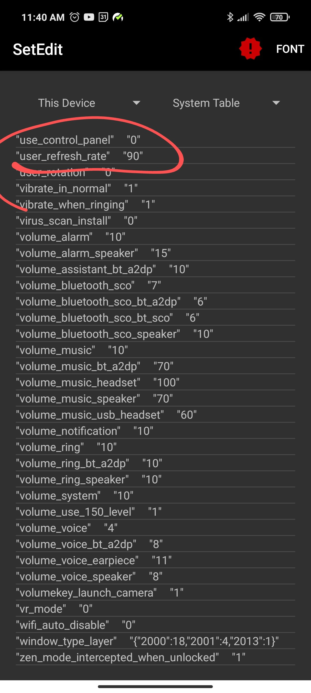 21To lower the refresh rate on MIUI, you need to install SetEdit application, scroll down and find a field called "user_refresh_rate". Tap on it, tap EDIT VALUE and enter 90, for example.