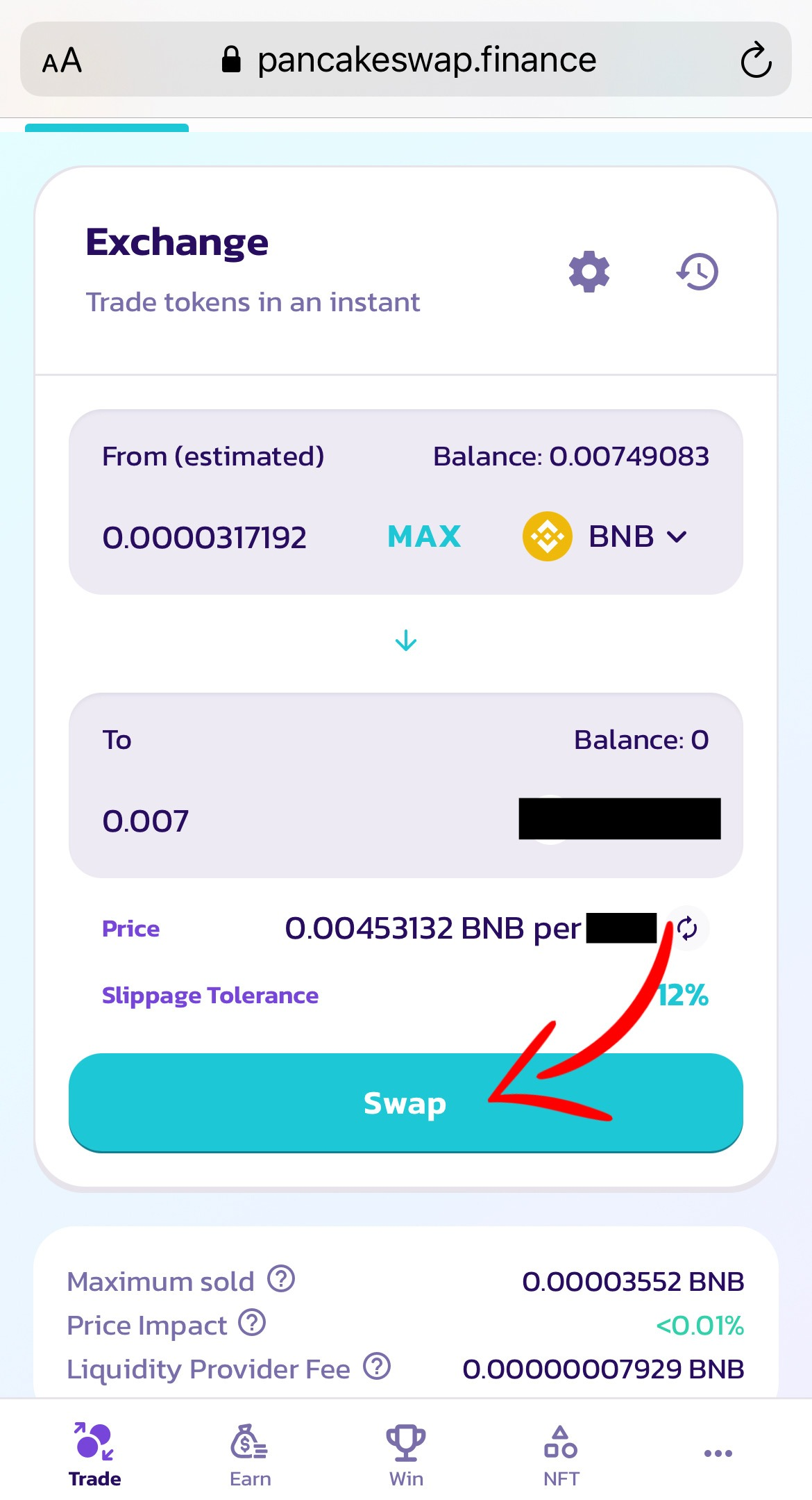 Choose "slippage" 12%