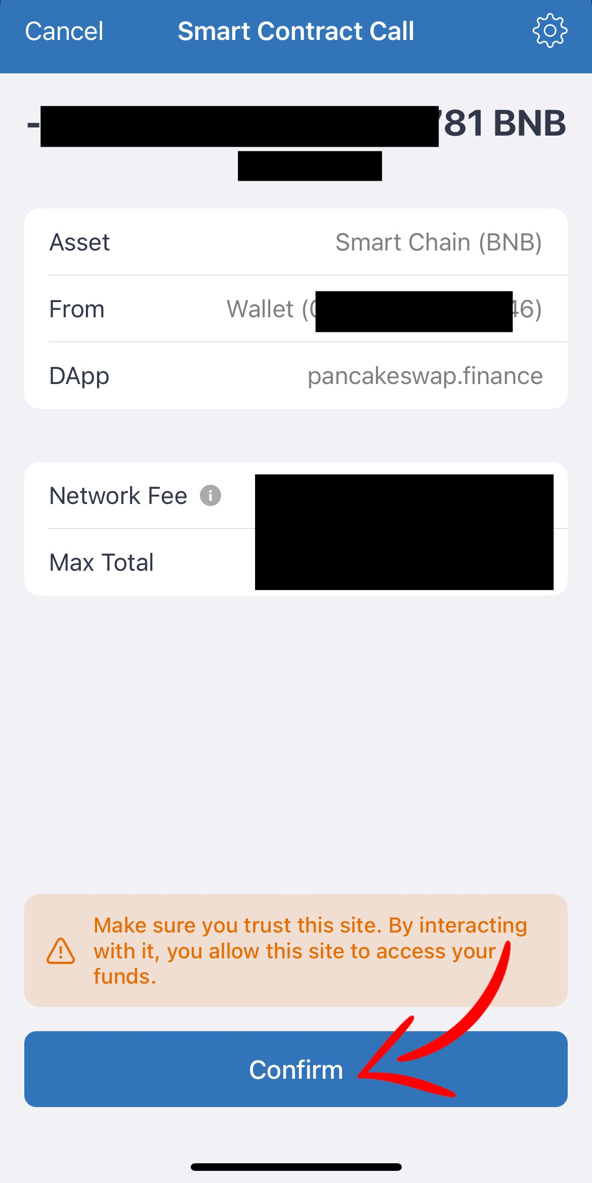 We return to the trust vallet and click Confirm