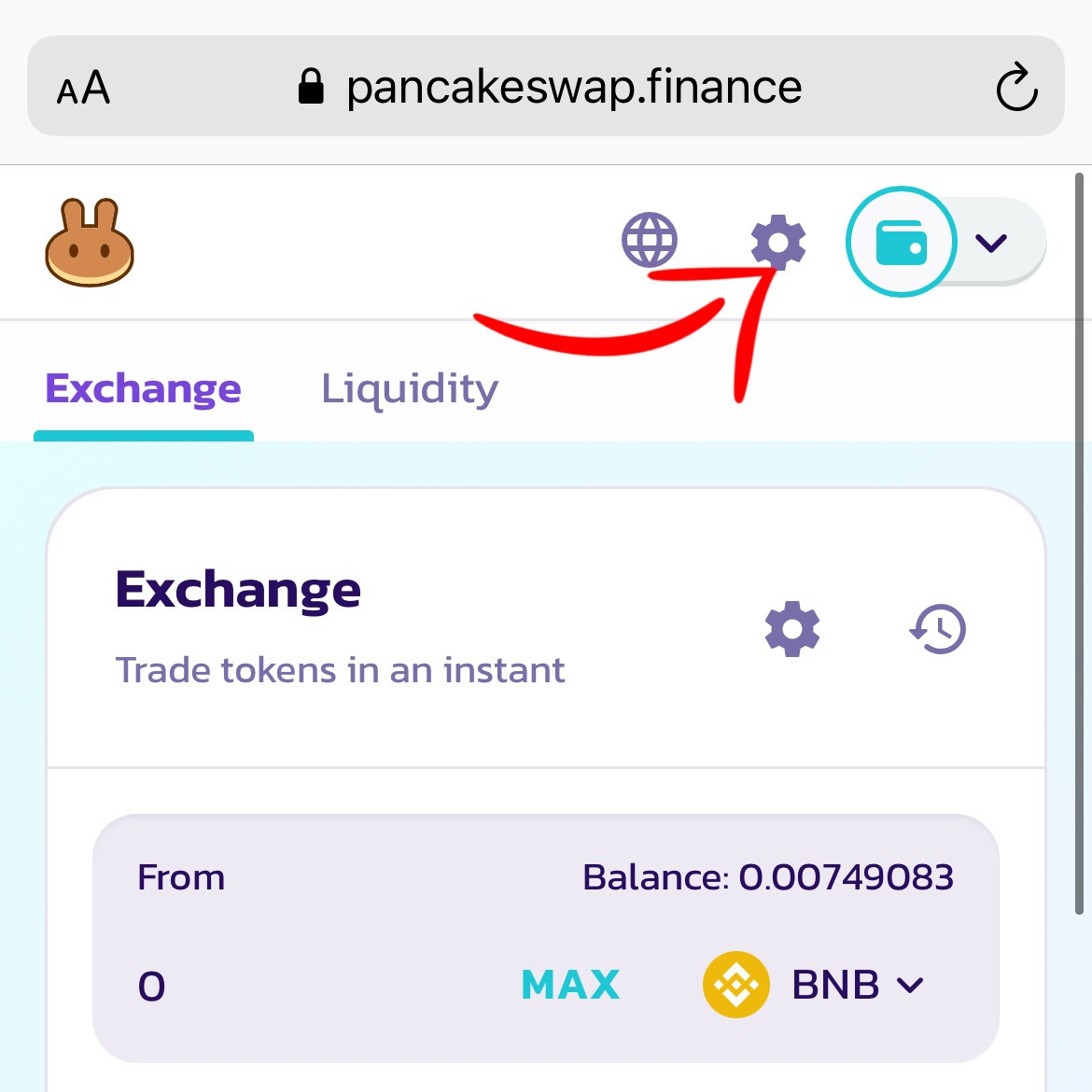 The next step is to connect our wallet to the pancake swap, click "Connect wallet"