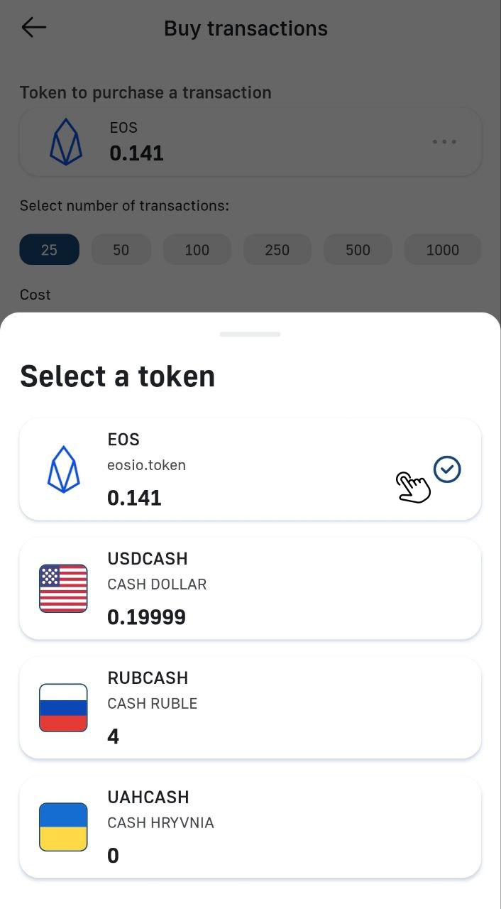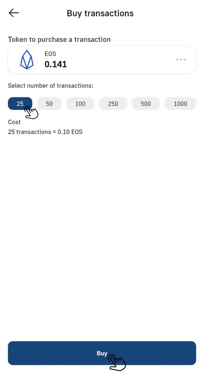 Select the necessary number of transactions and click the «Buy» button: