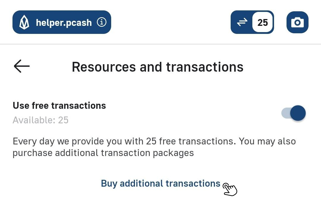 To buy transactions, you should click on the «Transaction Counter» in the upper right corner of the wallet and go to the resources menu: