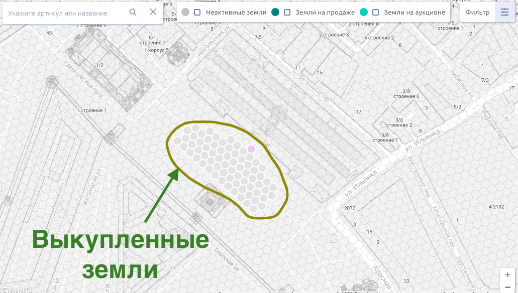 Пример: Красная площадь со свободными и купленными землями