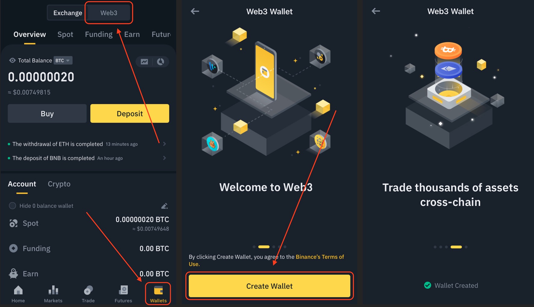 - Click "Create Wallet" and wait for the process to complete.
