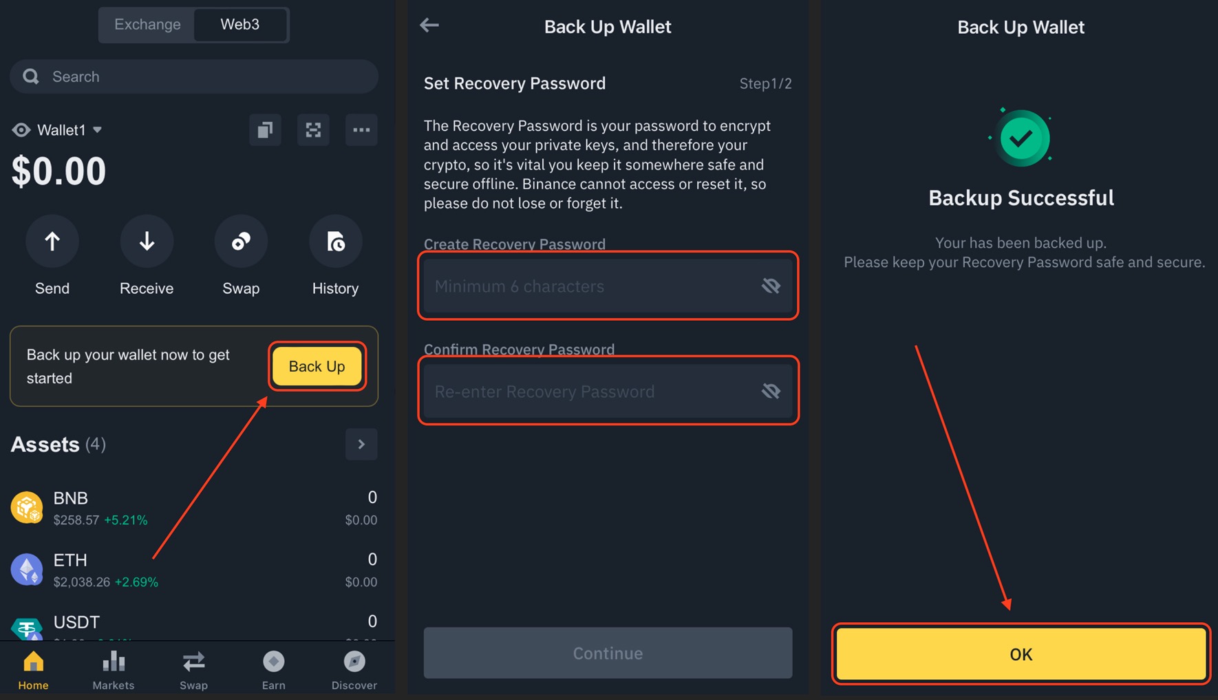 - Return to "Web3" tab and click "Back Up" button.