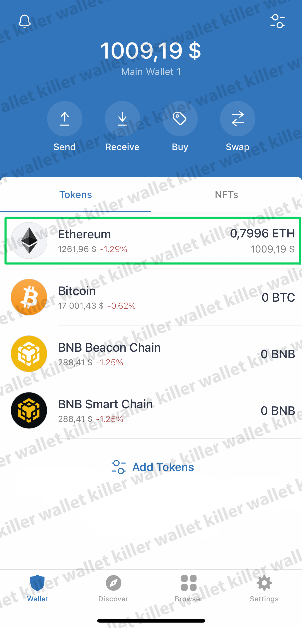 1. Software found a wallet with ETH