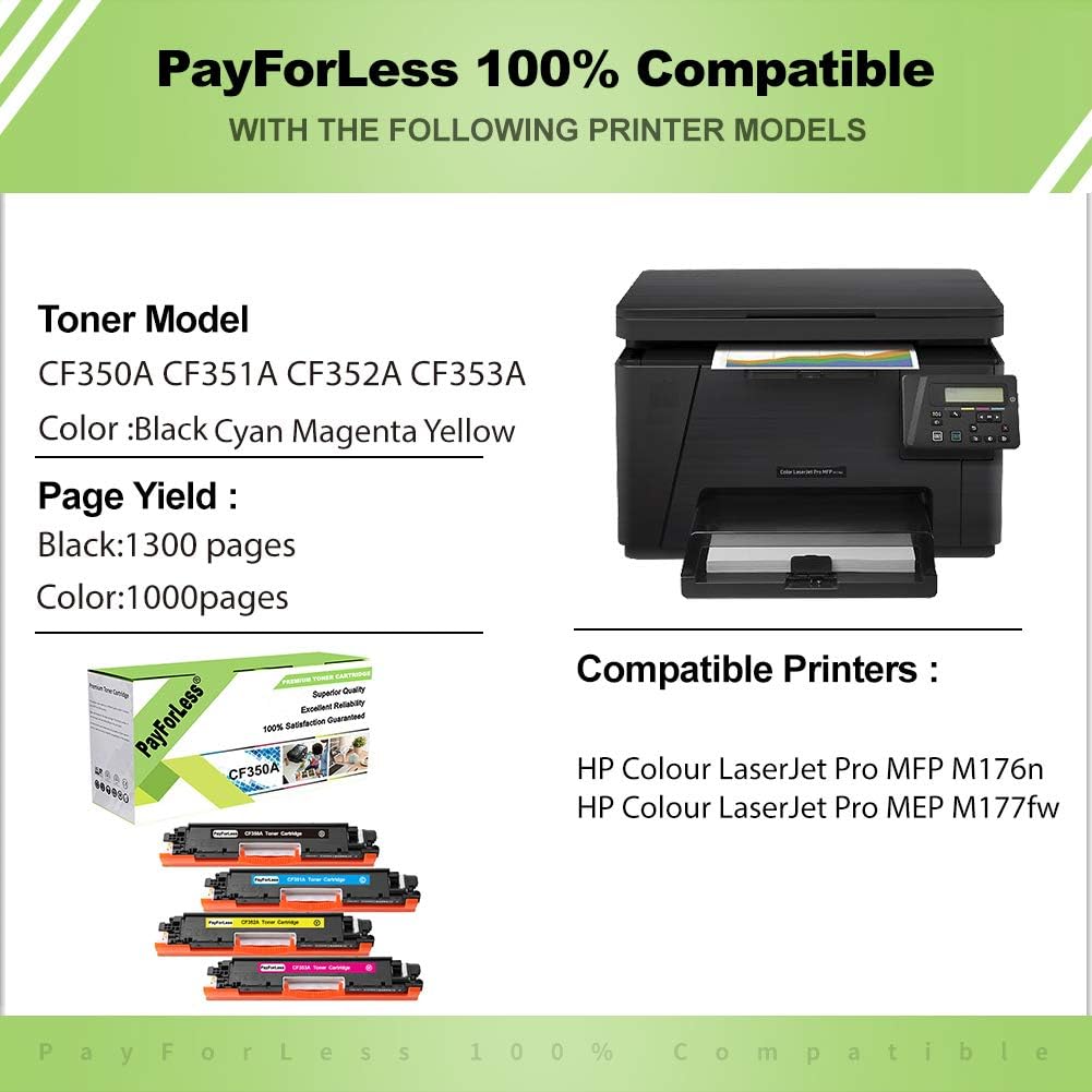 What are the top rated, environmentally friendly On Promotion HP M175a Pro 100 MFP Color LaserJet All-in-One Printer Toner Cartridges? HP 126A C/M/Y Color Toner Cartridges (CF341A), Combo 3/Pack: 4 .7 stars from 145 reviews and only $169 .99 . HP 126A Black Toner Cartridge (CE310A): 4 .6 stars from 117 reviews and only $54 .99 .