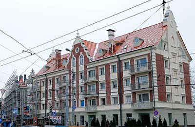 В Калининграде осталось немало строений в ганзейском стиле . Но, центральная часть Кенингсберга была разрушена, и на месте расчищенных завалов построены советские хрущевки .