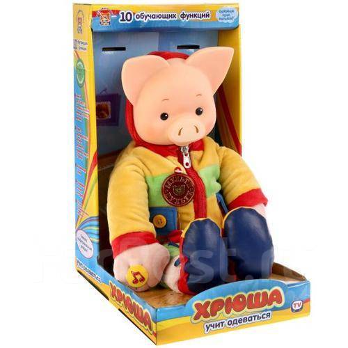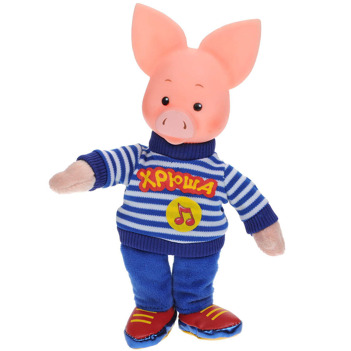 Самый известный персонаж Хрюша из передачи "Спокойной ночи, малыши!" теперь воплощён в новом интересном образе ТМ "Мульти-Пульти" . Тело выполнено из мягкого плюша, а голова из пластика . Одет в костюмчик и ботиночки ярких цветов: красный, жёлтый и зелёный .