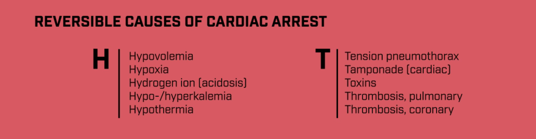 Существует мнемоническое правило для запоминания потенциально обратимых причин прекращения работы сердца - правило H's and T's: