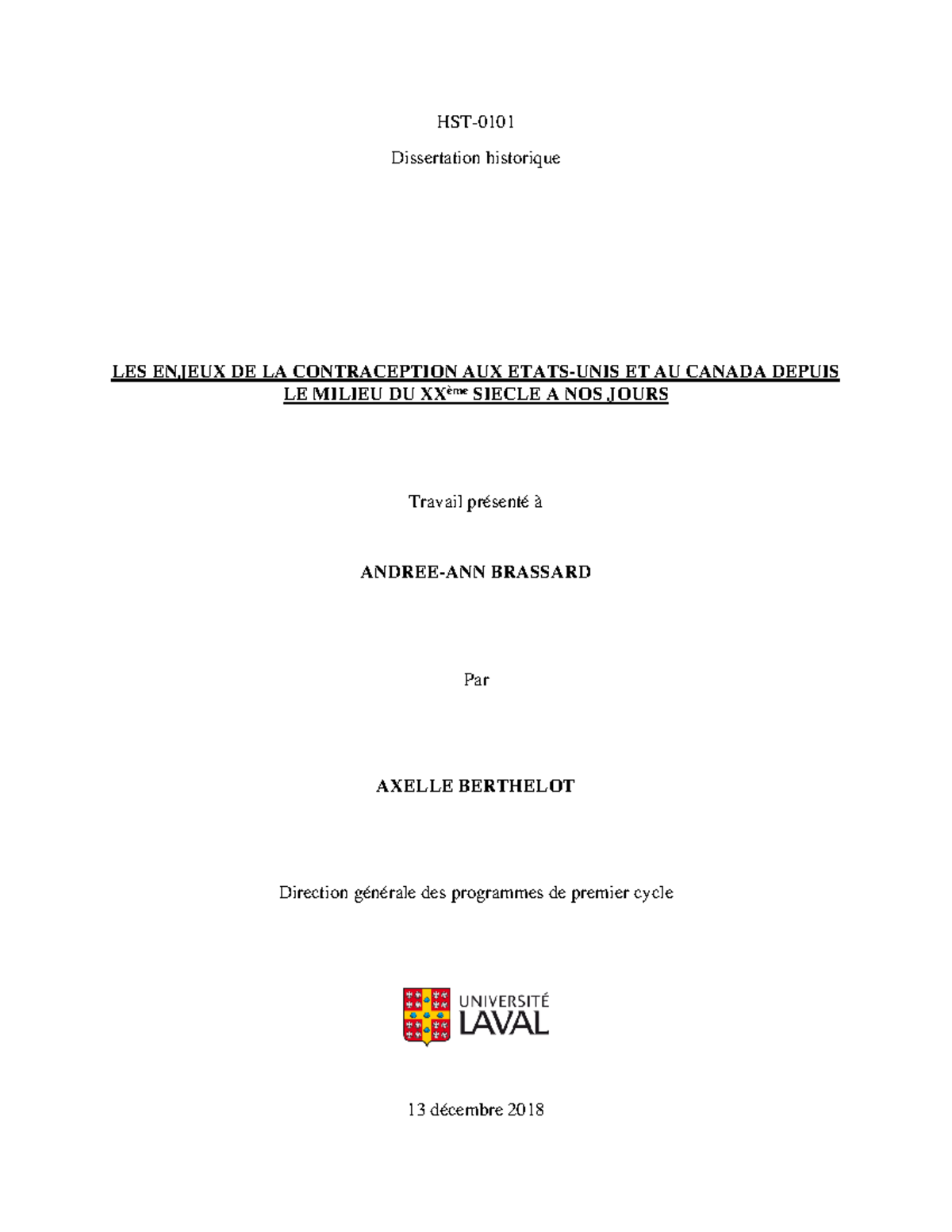 HST-0101 Dissertation historique - Université Laval