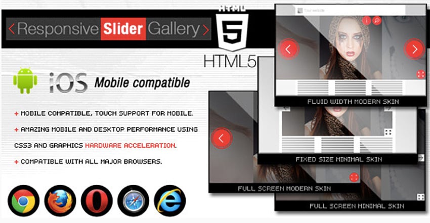 HTML5 открывает пользователям на многих устройствах более последовательный веб-интерфейс . Слайдер оптимизирован для бесперебойной работы на мобильных устройствах .