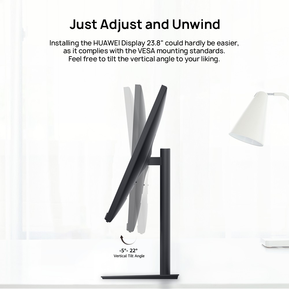 23 .8-inch FHD IPS screen, TÜV Rheinland certified low blue light, flicker free display , VESA mounting standards, check out the specifications of HUAWEI Display 23 .8 "