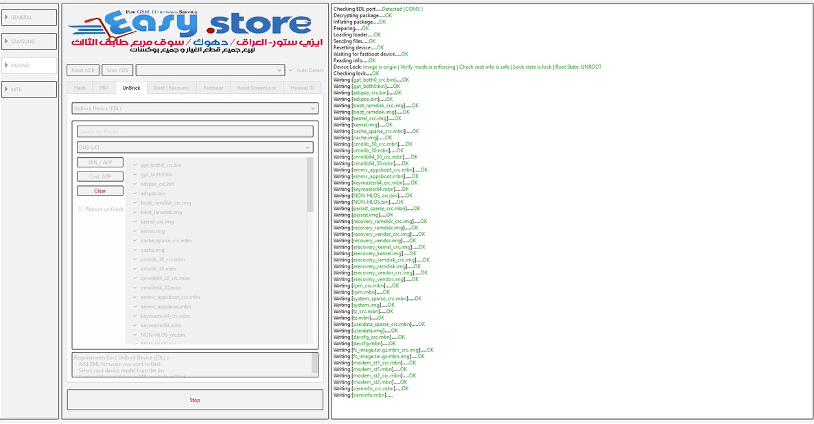 Huawei DUB-LX1 Y7 2019 Reset FRP and Format . This method supported all Android Versions and New Patch Securities . You need do TestPoint for force "EDL" Mode, TestPoint Picture : Searching Qualcomm 9008 Port[FOUND](COM41) Getting device info . . Device MODE : SAHARA . Connecting to Firehose . . .