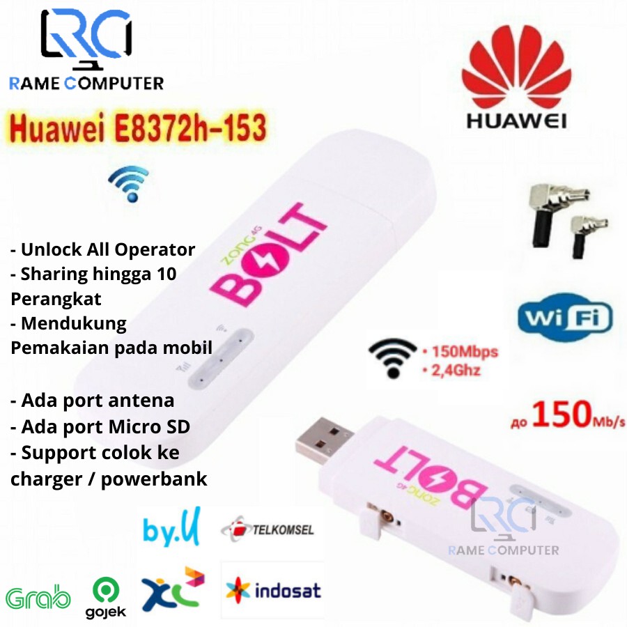 Huawei WINGLE ZONG Bolt E8372H - 153 -4G LTE Fino A 150 MBPS in DL - WiFi (Fino A 10 DISPOSITIVI CONNESSI) Tutti i prezzi includono l'IVA . Questo prodotto è compatibile con . HUAWEI E8372H-153 A MARCHIO " ZONG BOLT " MA UTILIZZABILE CON TUTTE LE SIM DI TUTTI GLI OPERATORI MOBILI (ILIAD, HO MOBILE, WIND, TIM , VODAFONE, ECC . .)