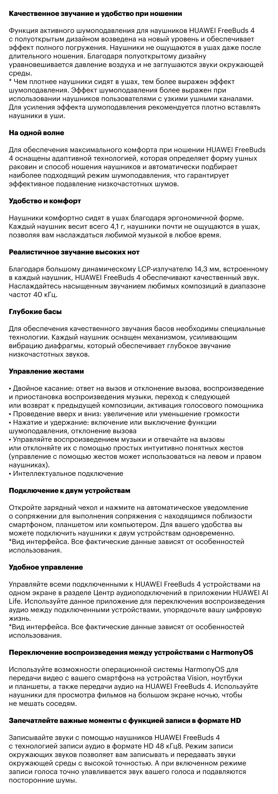 HUAWEI FreeBuds 4 takes Open-fit Active Noise Cancellation to new heights, incorporating all-new adaptive ear-matching technology for even greater audio immersion . The earbuds are ergonomically moulded to precisely fit your ear, for a shape that feels right every time . And at just 4 .1 g2 each, they'll sit naturally and comfortably in your ears, offering an almost weightless way to enjoy music .
