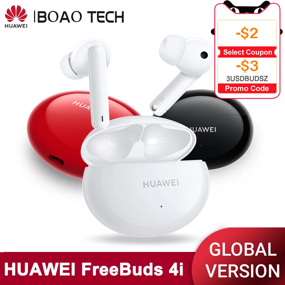 Huawei FreeBuds 4i . True wireless in-ear headphones with Bluetooth 5 .2, ANC and touch control . With the FreeBuds 4i , Huawei introduce a cheaper and technically slimmed-down version of the FreeBuds Pro . The new headphones offer a sleek design, active Noise-Cancelling and long battery life .