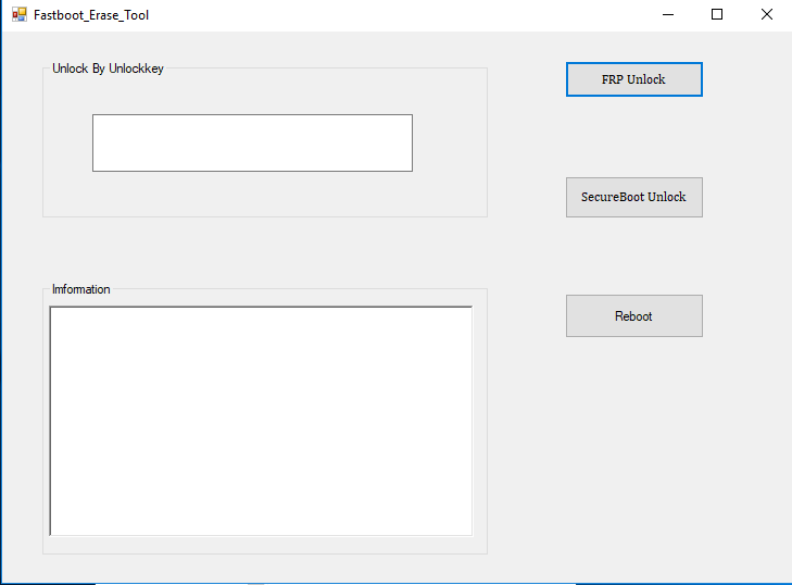 How to Unlock FRP Lock on Huawei with Erase_Tool_FASTBOOTET01Ver1006: - Download Erase_Tool_FASTBOOTET01Ver1006 .zip . - Extract Erase_Tool_FASTBOOTET01Ver1006 .zip and Open the FastbootET01 .exe . - Connect the Phone with FASTBOOT MODE . - Put the Key in FRP PWD field & Click Unlock FRP . - Output result will be FRP Unlock Success!