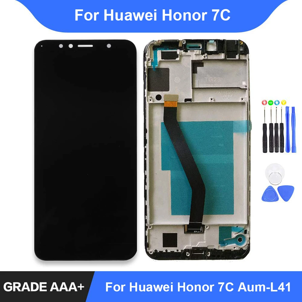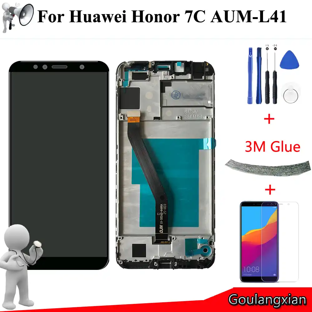 Huawei honor 7c aum l41 Android smartphone . Announced 2018, August . Features 5 .7" IPS LCD display . Snapdragon 430 MSM8937 chipset, 3000 mAh battery, 32 GB storage, 3 GB RAM