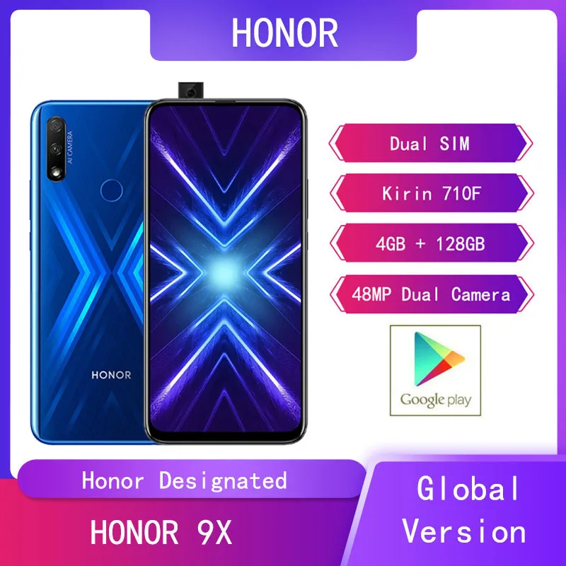 Honor 9X Android smartphone . Announced Oct 2019 . Features 6 .59″ display, Kirin 710F chipset, 4000 mAh battery, 128 GB storage, 6 GB RAM .