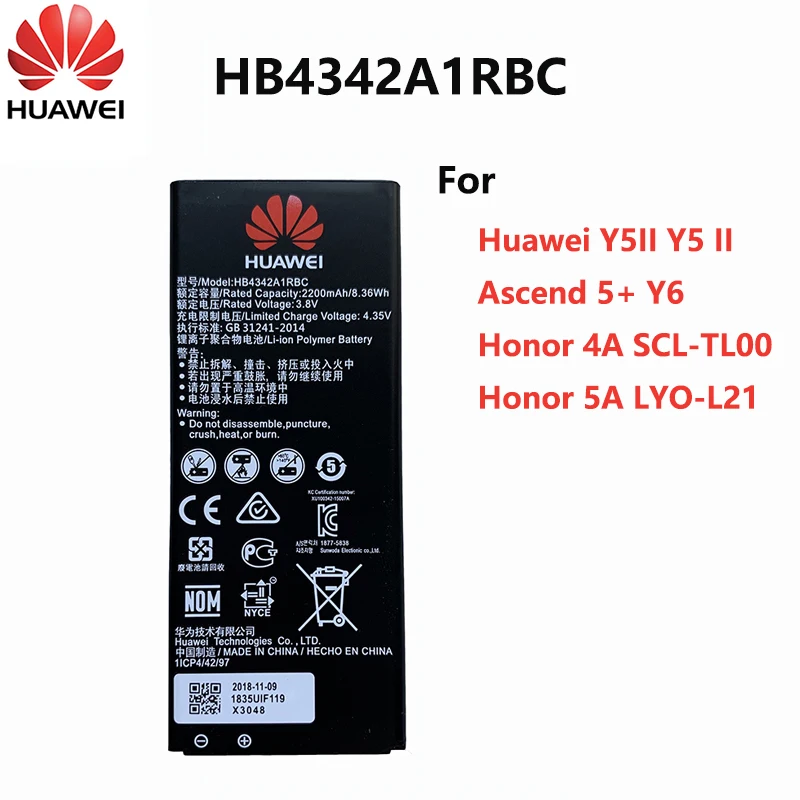 HB4342A1RBC , batteria originale per Huawei Honor 4A, Y5 II, Y6, Y6 II, compatta, da 2 .200 mAh : Amazon .it: Elettronica