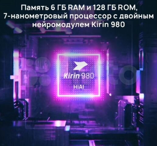 8-ядерный процессор HUAWEI Kirin 980 с двойным нейромодулем Технология быстрой зарядки HUAWEI SuperCharge (макс . 40Вт .) Разрешение: FHD+ 2340 x 1080, 398 точек на дюйм