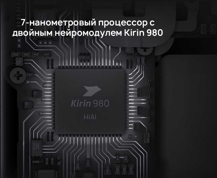 За производительность в смартфоне отвечает 8-ядерный процессор Huawei Kirin 980 с двойным нейромодулем .