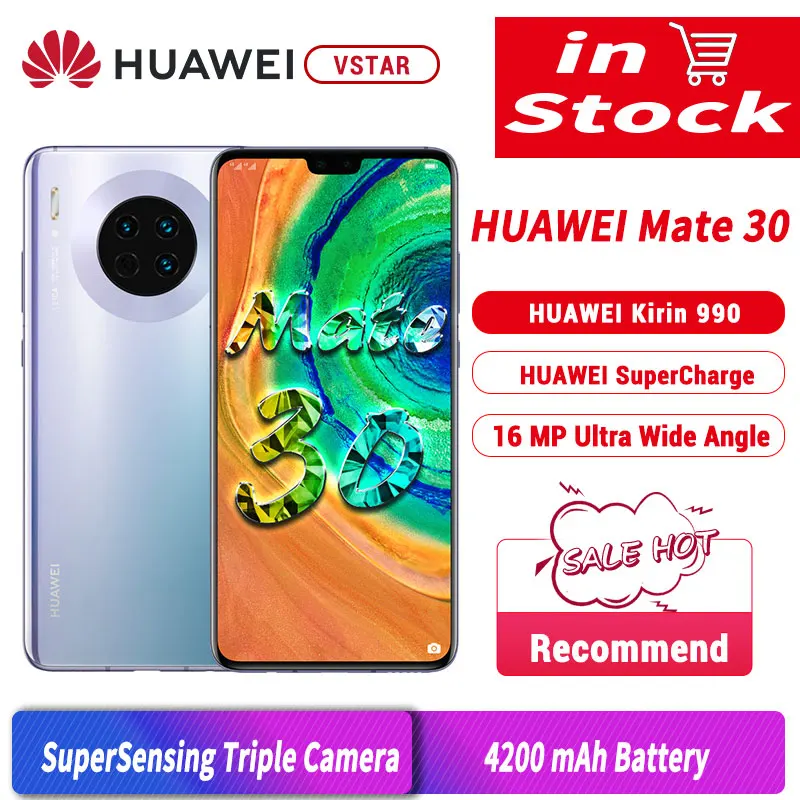 Huawei Mate 30 5G Android smartphone . Announced Sep 2019 . Features 6 .62″ display, Kirin 990 5G chipset, 4200 mAh battery, 256 GB storage, 8 GB RAM .