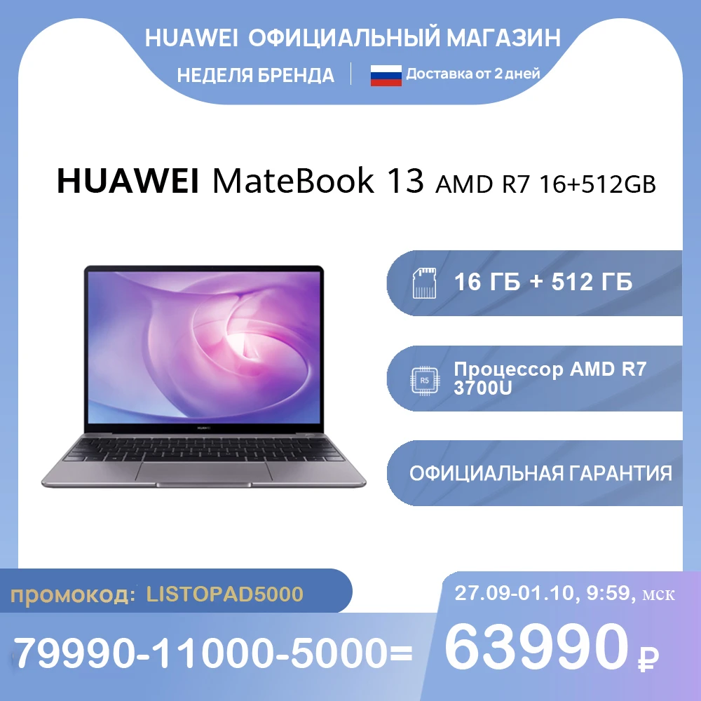 Alege laptopul HUAWEI Matebook 13 la super pret cu design elegant si Windows 10 inclus, procesor AMD ,16GB RAM si 512GB SSD . Beneficiezi de livrare gratuita , plata in rate si ramburs in 14 zile