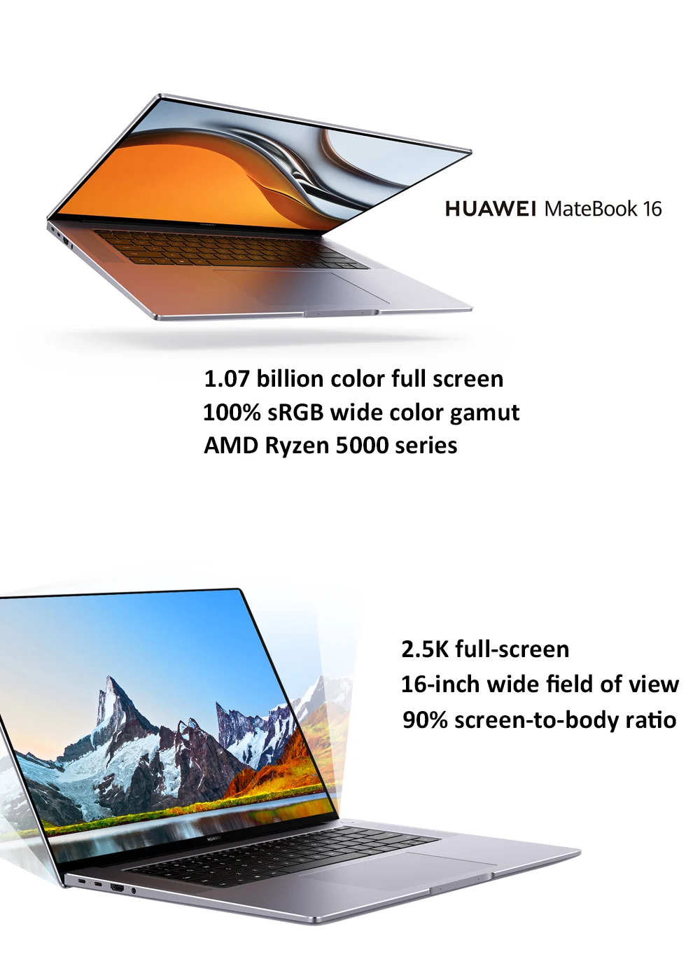 Packed with all-new custom AMD Ryzen™ 7 5800H 7nm processor and 16 " 2 .5K FullVIew Display, HUAWEI MateBook 16 brings performance and intelligence to a new level .