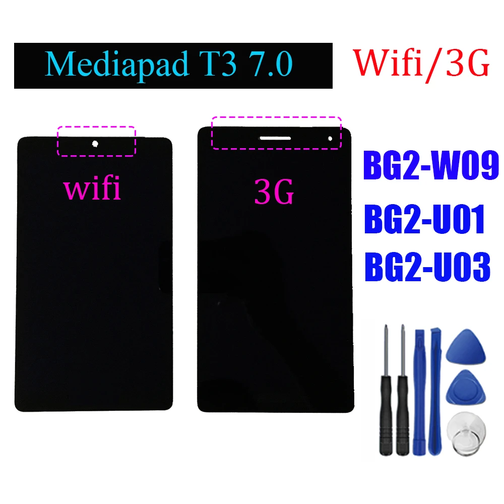 Huawei MediaPad T3 7 .0 Android tablet . Announced Apr 2017 . Features 7 .0″ display, MT8127 chipset, 2 MP primary camera, 2 MP front camera, 3100 mAh battery, 16 GB storage, 2 GB RAM .