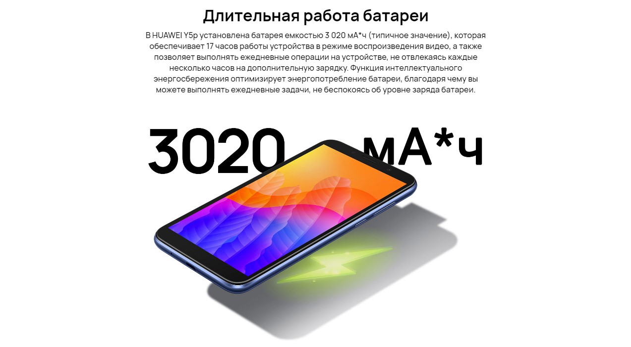Batteria 3020 mAh . Android 10 . Huawei Y5p è uno smartphone di fascia bassa con sistema operativo Android . Il display da 5,45 pollici di questo smartphone ha una risoluzione di HD+ / 720 x 1440 . . .