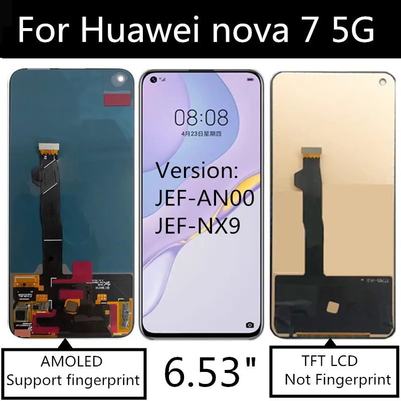 Huawei nova 7 5G Android smartphone . Announced Apr 2020 . Features 6 .53″ display, Kirin 985 5G chipset, 4000 mAh battery, 256 GB storage, 8 GB RAM .