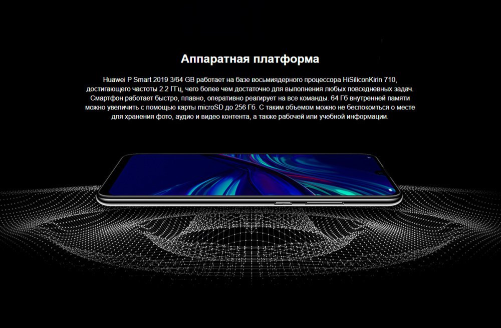 Huawei P Smart ( 2019 ) è il successore del best-seller Huawei P intelligente . Con uno schermo Full HD + da 6,21 pollici, il P Smart 2019 è alimentato da un processore Kirin 710 octa-core con 3 GB di RAM e 32 GB o 64 GB di memoria interna .