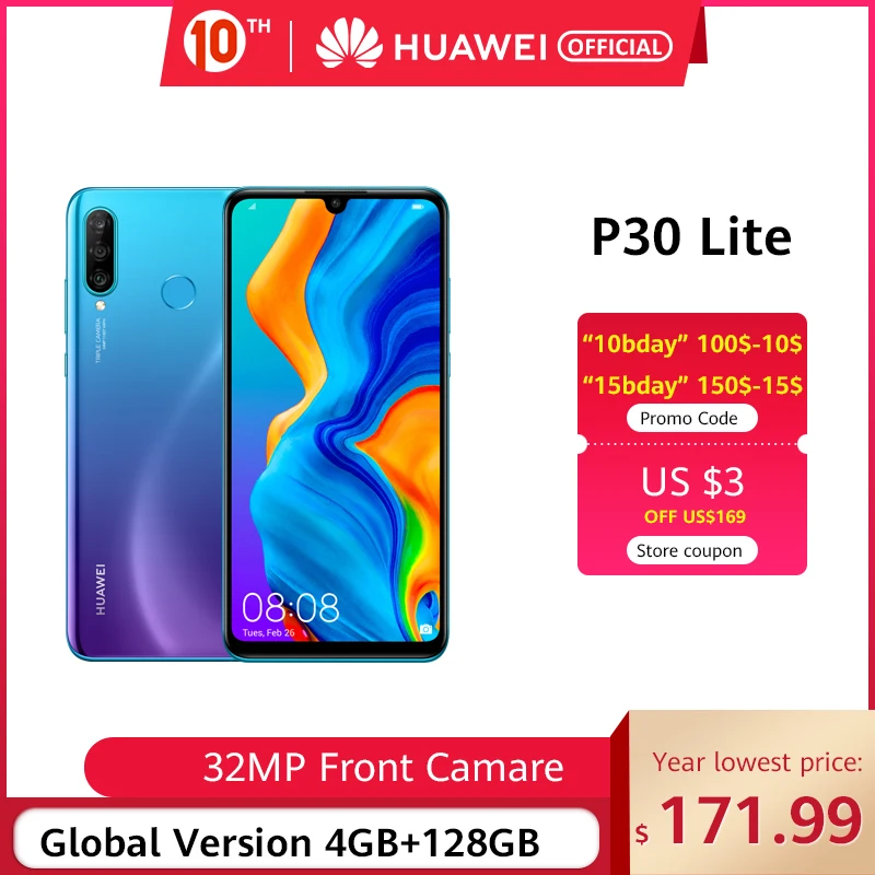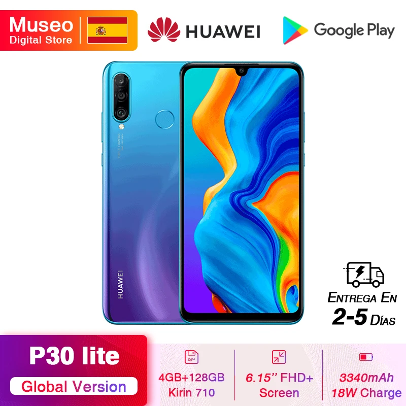 Huawei P30 lite Android smartphone . Announced Mar 2019 . Features 6 .15″ display, Kirin 710 chipset, 3340 mAh battery, 256 GB storage, 8 GB RAM .
