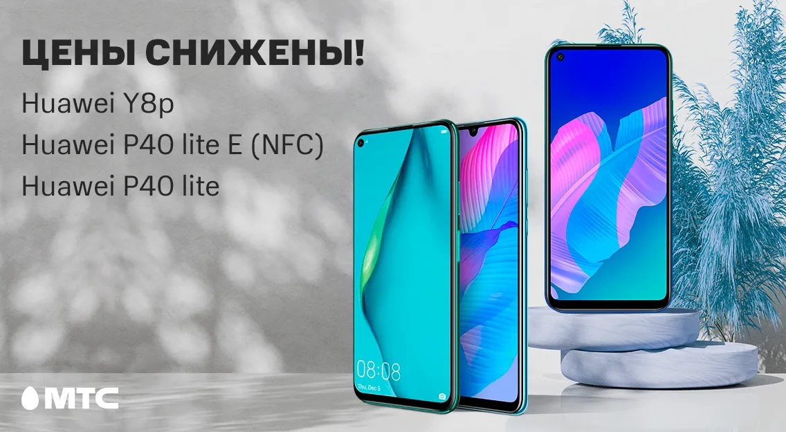 В МТС снизились цены на смартфоны Huawei Y8p, Huawei P40 lite , Huawei P40 lite E с NFC и без NFC .С 4 сентября при их покупке можно сэкономить до 170 рублей . . Наибольшее снижение цены коснулось модели Huawei Y8p, получившей 4/128 ГБ памяти, 6,3-дюймовый . . .