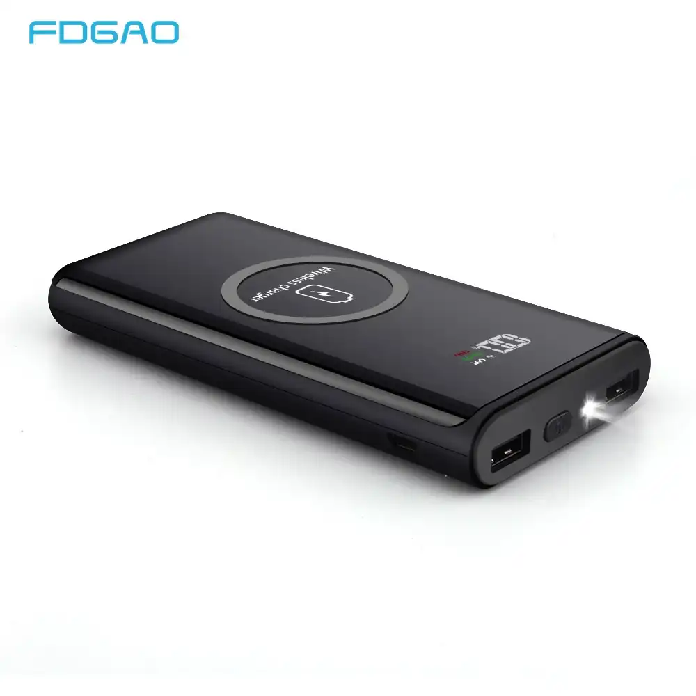 Портативное зарядное устройство 20000 mAh со стеклянным покрытием, 4-я разъемами (2 USB, 1 Type C, 1 Lightning), поддержкой быстрых зарядок QC4 .0 и PD 22 .5Вт, LED-дисплеем, фонариком и функцией беспроводной зарядки Qi (10Вт)
