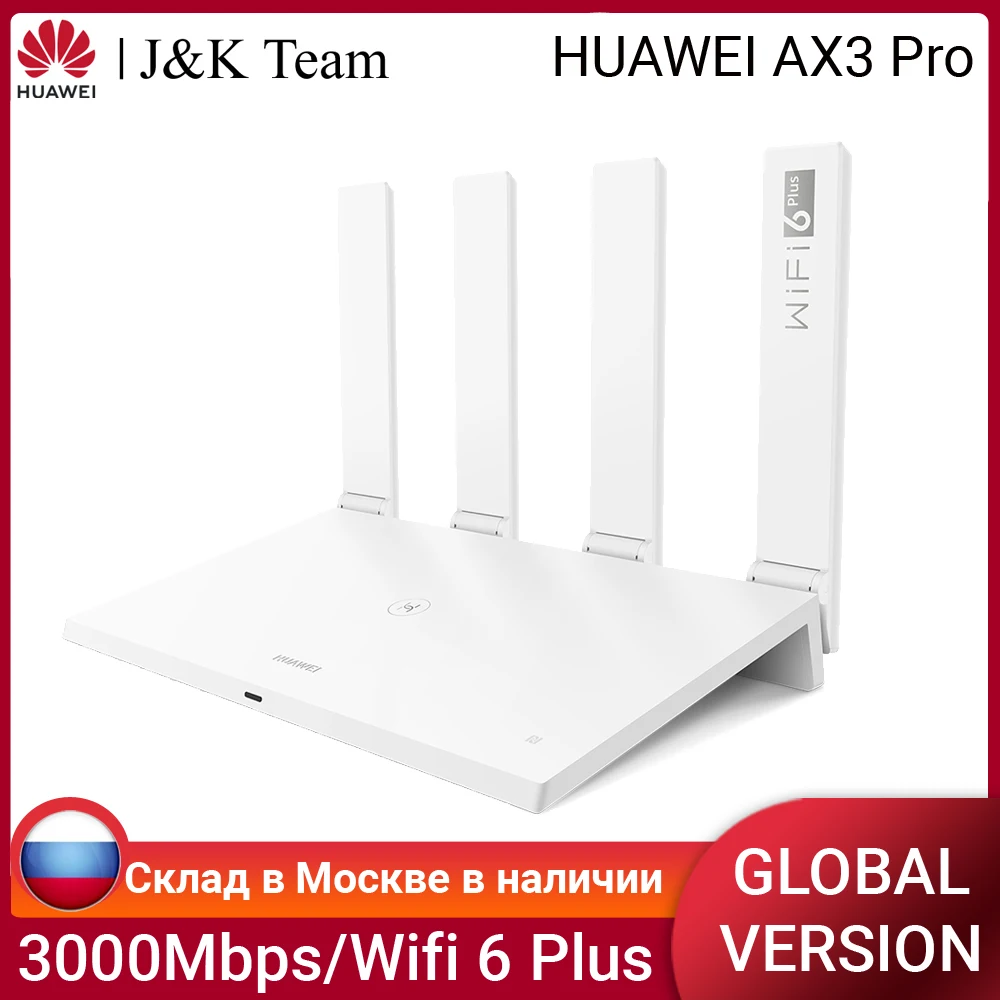 Unboxing - Huawei WiFi AX3 Wireless Router Wi-Fi 6 Plus The Huawei WiFi AX3 wireless router comes in white packaging that spells premium overall . The front side of the packaging reveals the product design as well as a couple of main features such as Wi-Fi 6 Plus , Huawei Share, and a Quad-core 1 .4GHz processor .