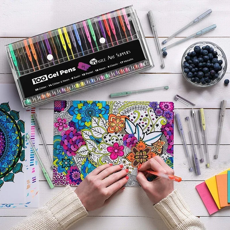 "HuiQin 100 Gel Pen Set with Case for Kids or Adult Drawing Writing - Kit Includes Metallic Glitter and Neon Smooth Fine Tip Gels" * Buy Now Just For 24$