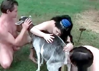 Zwei deutsche Frauen ficken mit Pferd und ein Mann