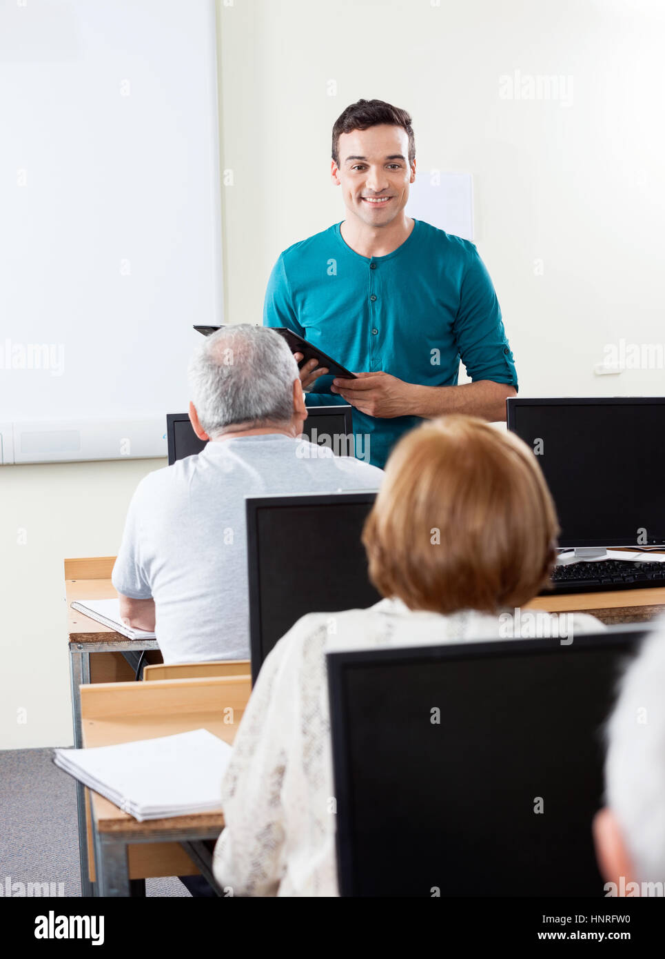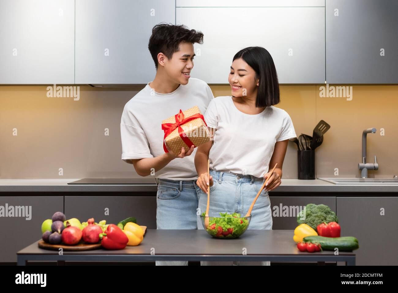 Husband gives lesson with plastic