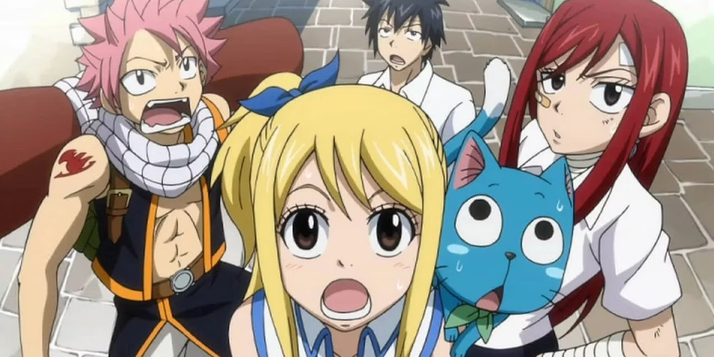 Формально проводницей в мир сериала выступает Люси, однако образ типичного сёнэн-героя достается Нацу. Он обладает парой характерных качеств (буйный нрав и доброе сердце), а также заветной целью: найти отца-дракона, который его вырастил. Впрочем, его поиски не являются сквозным сюжетом, а явный протагонист отсутствует. Это практически образцовый представитель ансамблевого аниме, где у всех центральных персонажей есть отдельные арки, раскрывающие подробности их жизни до вступления в «Хвост феи», а основное внимание сосредоточено на выполнении миссий.