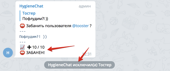 Можно как выгнать пользователя из чата, так и выдать Ro. Для этого есть две команды: /ban и /ro.
