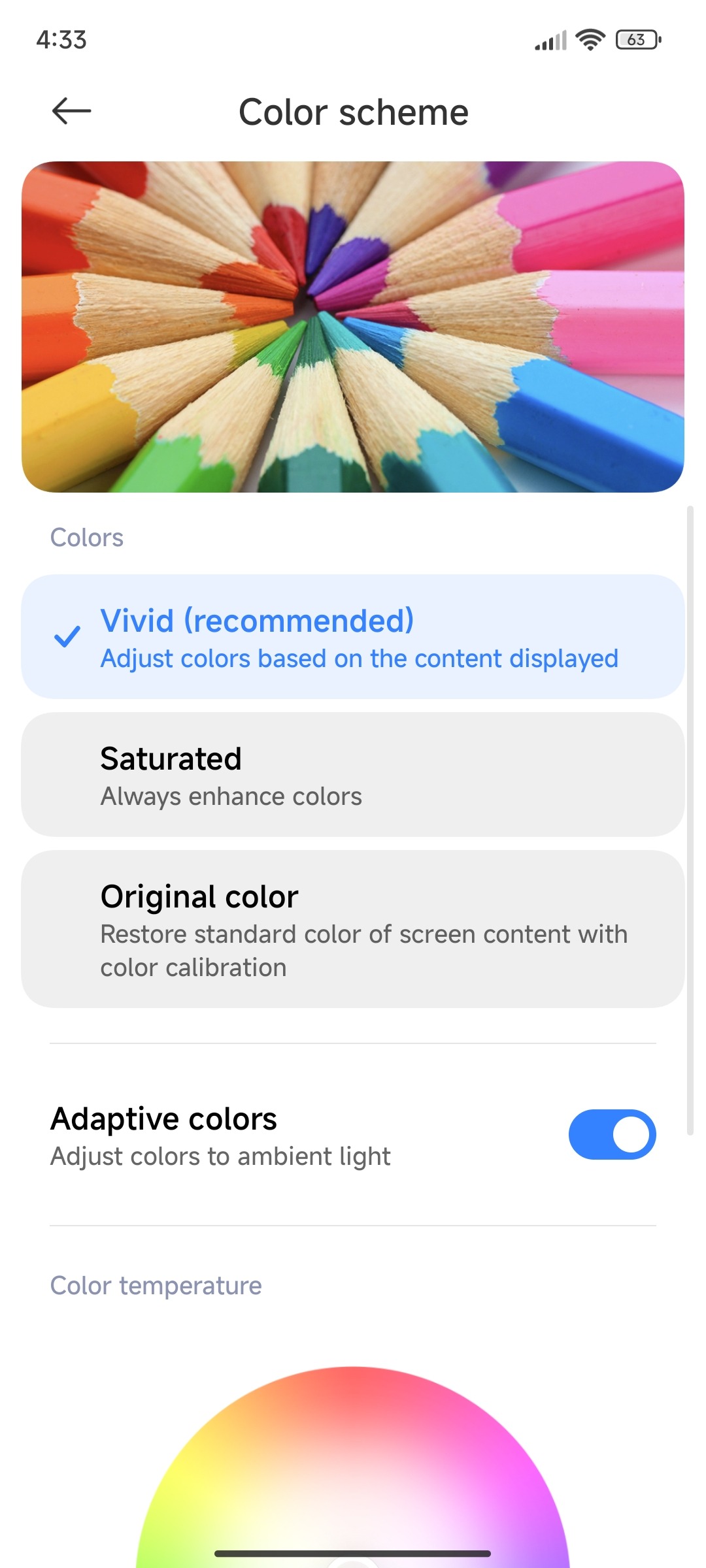 • Enabled adaptive colour