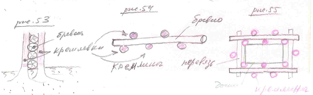 Кремельные основы, и наши Предки заметили, что? Одна кремлина, допустим, вторая кремлина, а между ними укладываются ветки, брёвна (кремлины вертикально, брёвны горизонтально между ними, соприкасаясь, как доски к столбам) (рис.52).