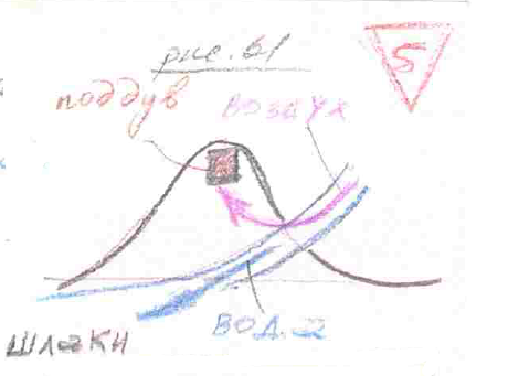 Вот эти системы, будем говорить, естественного поддува. Наши Предки заметили, чем сильнее поддув, тем выше температура. Поэтому, когда археологи сначала обнаружили на Алтае какое - то древнее сооружение, и сначала как всегда: «Это культовое место». Потом: «Нет, чё-то дырок много. Наверное, какое-то астрономическое сооружение». А когда точно такое же нашли в Армении, и там, в этих ложбиночках верхних, по которым стекал, обнаружили капельки платины, то для них стало понятно, что это не что иное, как обогатительный завод по производству платины, которую ещё тысячи лет назад, наши Предки могли выплавлять. Только и всего. Этот принцип (рис.61) мы, где сейчас используем? В печке, камины, которые делают. А печка, любого формата, она та же самая.