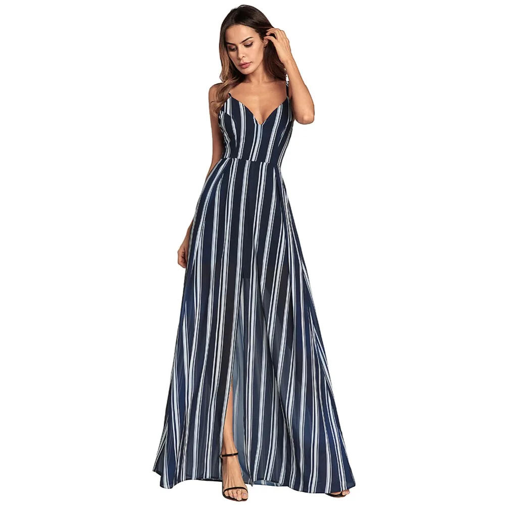 Summer new style sexy suspenders V-neck open back long skirt banquet dress Split lace dress